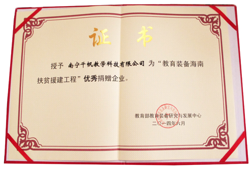 南寧千帆攜“千帆”中小學(xué)系列教學(xué)產(chǎn)品參與本次活動,并榮獲“優(yōu)秀捐贈企業(yè)”稱號。在整個(gè)活動過程中我們的產(chǎn)品及企業(yè)均得到教育裝備部門及學(xué)校老師的認(rèn)可。這個(gè)榮譽(yù)給予我們更多的信心,我們將以更優(yōu)質(zhì)的產(chǎn)品及服務(wù)來回饋社會。
