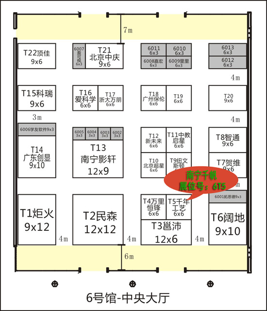 千帆展位號:6號廳T5 千帆展位號如圖所示: