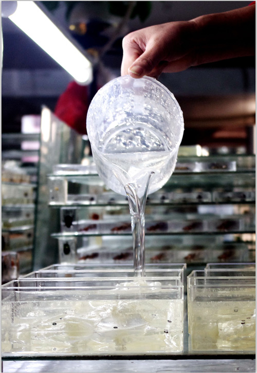 3、標(biāo)本體放入透明模具、添加樹脂材料進行封埋