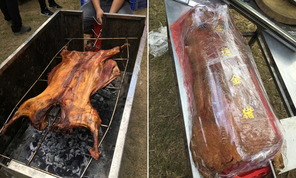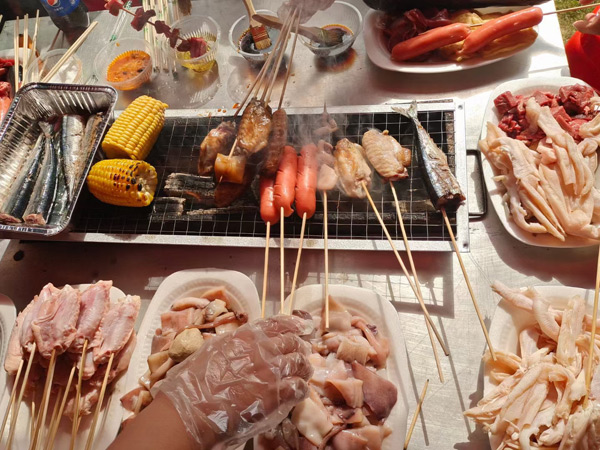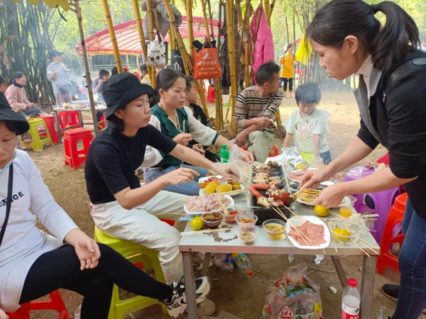 11:30體育運(yùn)動結(jié)束后,大家來到燒烤場進(jìn)行自助燒烤。燒烤場座落在綠蔭濃濃的竹林中,雖是冬日,卻煦日暖暖,溫和的陽光打在竹葉上,落下斑駁的日影,清風(fēng)襲來,沁人心肺。燒烤場里飄香四溢的烤全羊、外酥里嫩的烤香豬、肥肥的雞腿、嫩嫩的雞翅、勁頭十足的牛肉丸,還有火腿、茄子、玉米、青椒等早已備好,此時大家早已饑腸轆轆,便迫不急待地動起手來,“自力更生”,喂飽自己的肚子! 大家團(tuán)坐在烤爐旁,你遞個調(diào)料,我刷下辣醬,互幫互助,默契盡在不言中,其實(shí),這也是一種心靈的溝通與交流。